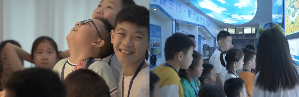 越健水文化健康科普馆将水生态文化和水文化内涵穿插在馆中各个区域,通过讲解的方式,增强小朋友们爱水、护水、节约水、重视好水的意识。
