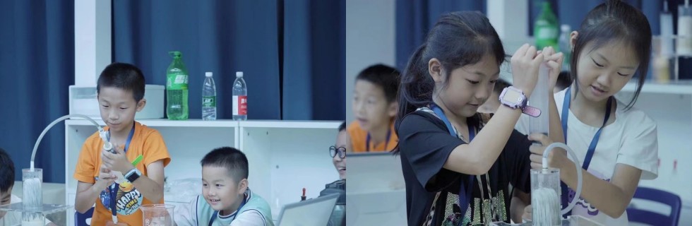 通过“碳酸饮料”“净化”的实践,让小朋友近距离体验水文化魅力。