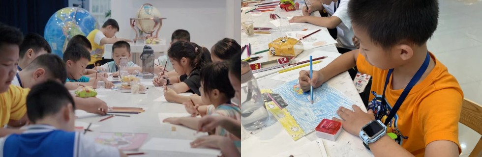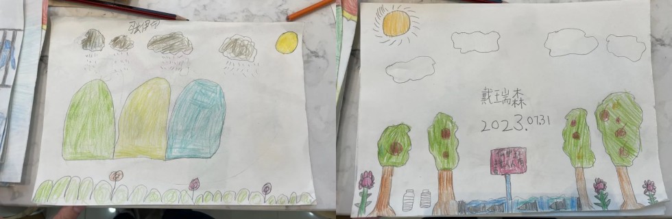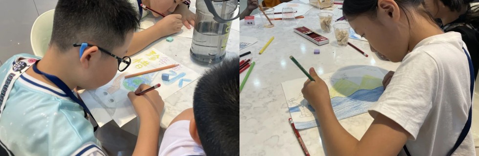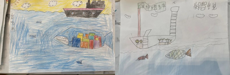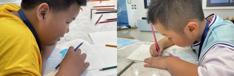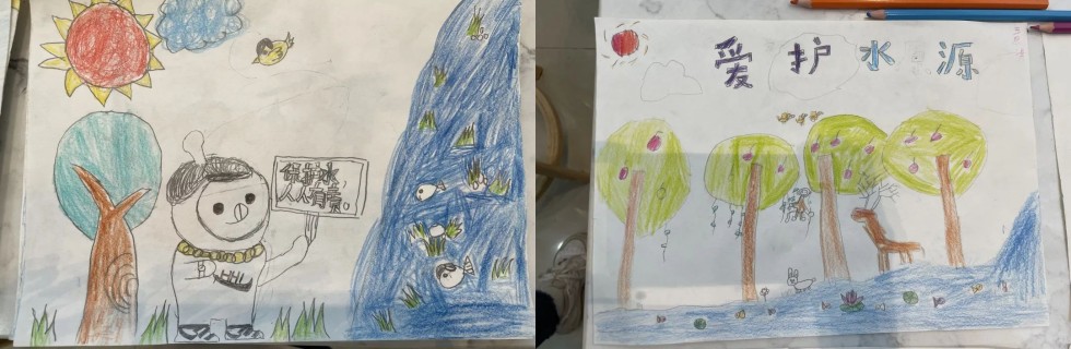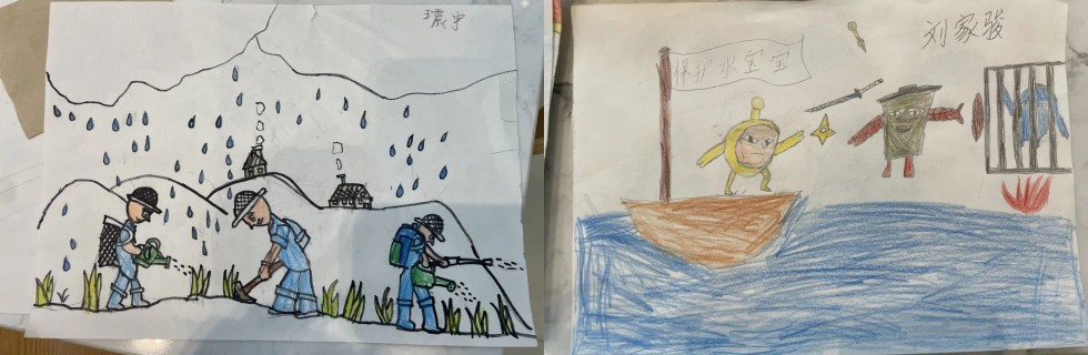 通过各种区域的学习,小朋友们脑洞大开,他们结合所学的水知识,每个人创意满满,画一幅与水相关的作品。