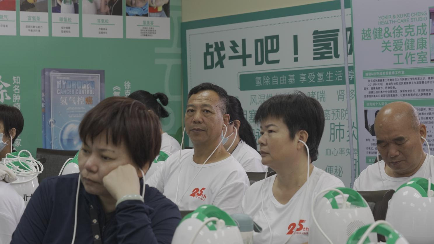 在新家居体验区,除了这三大展区,我们还有一些顾客体验区域,耳氢松体验区、好水好茶体验区、药包热敷以及清除自由基互动游戏。