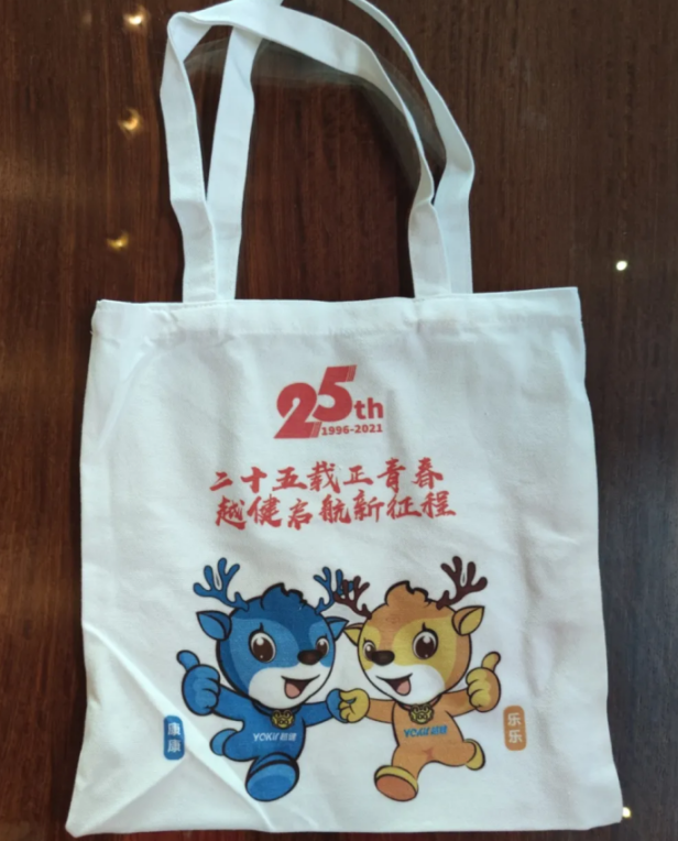 完成五个体验区中任意四个即打卡成功,可兑换一份越健25周年专属纪念品 --- 帆布袋。