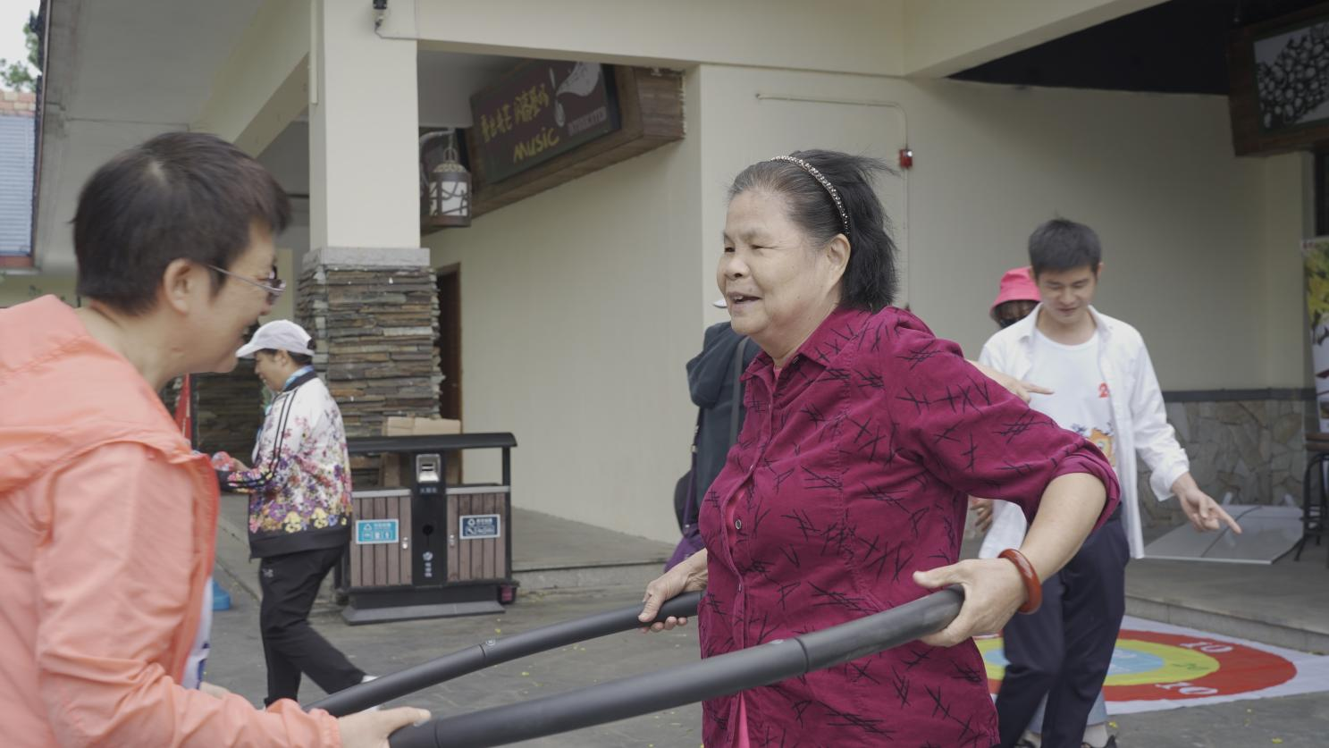 游戏休闲区有丢沙包、转呼啦圈、踢毽子、套环、四平八稳等多个好玩的游戏等着大家来体验。