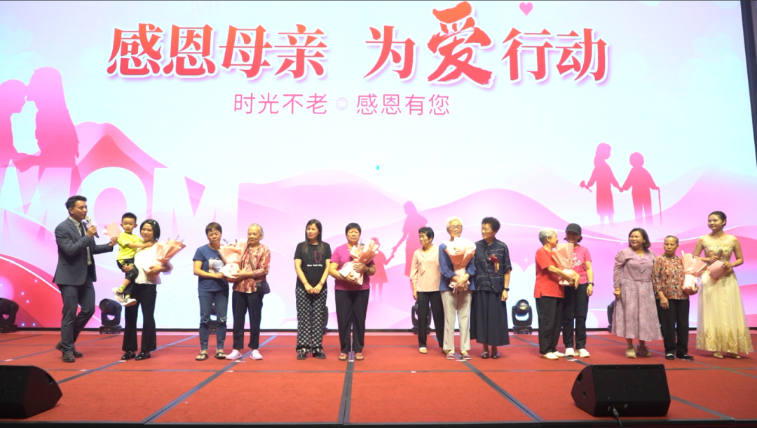 并且邀请他们来到舞台上大胆表达出自己对妈妈的感谢与爱